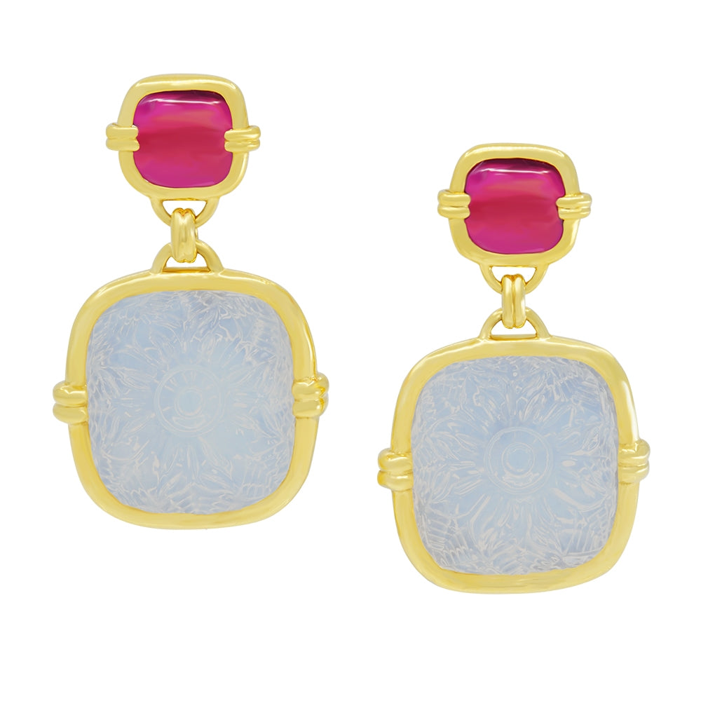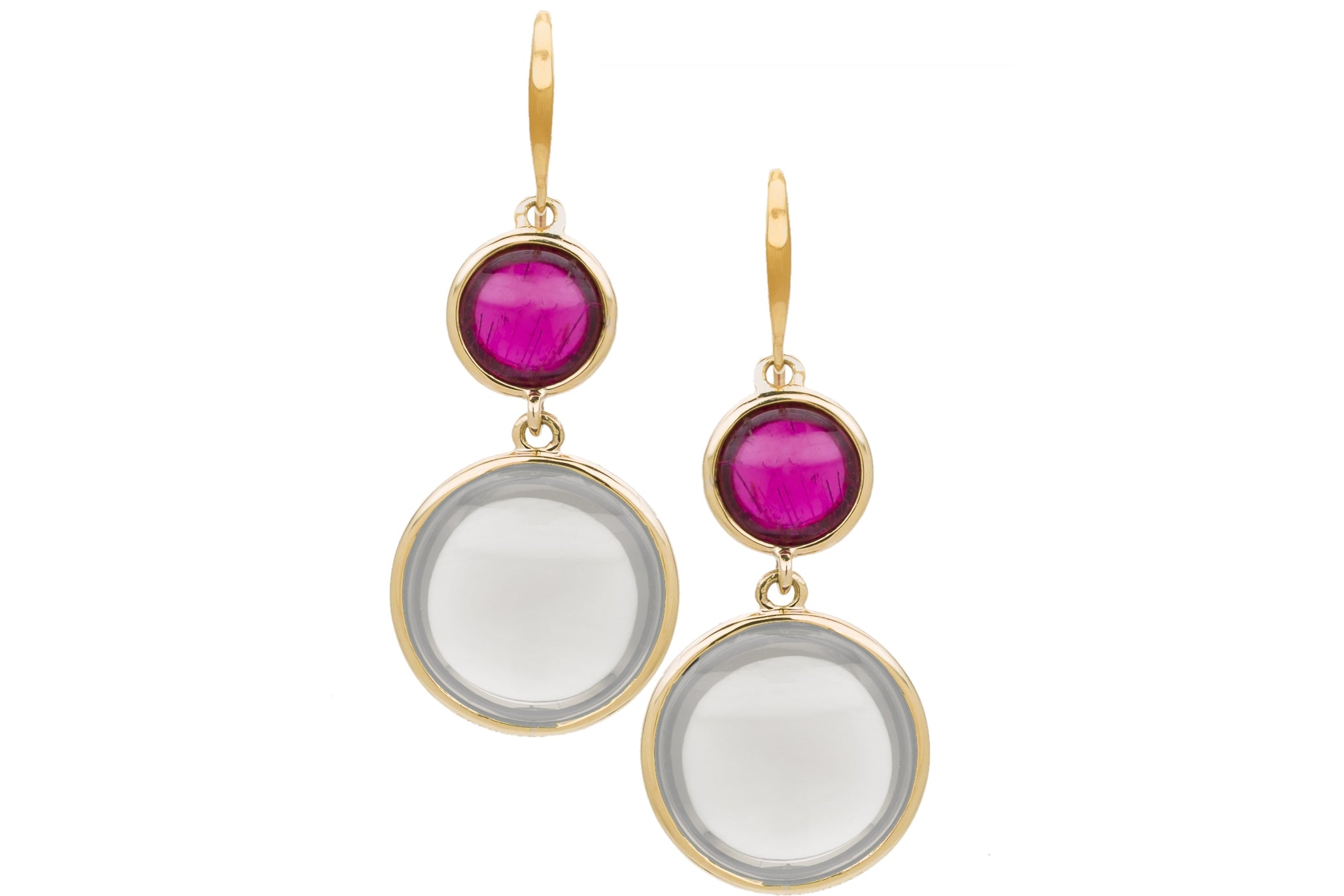 18K Yellow Gold Mischief Earrings with Quartz and Rubellite