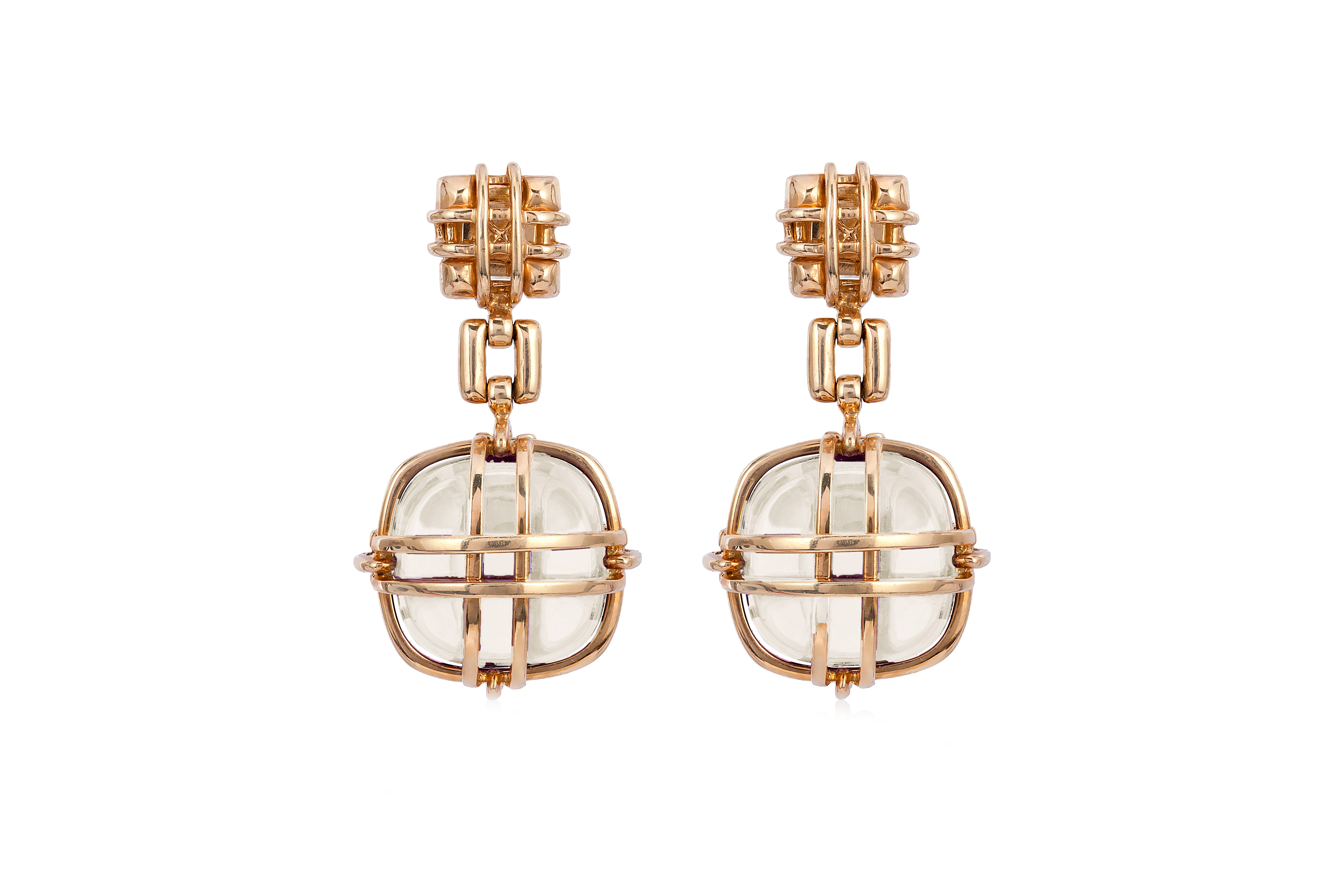 18k Yellow Gold Goshwara Rock Crystal Gossip Drop Earrings