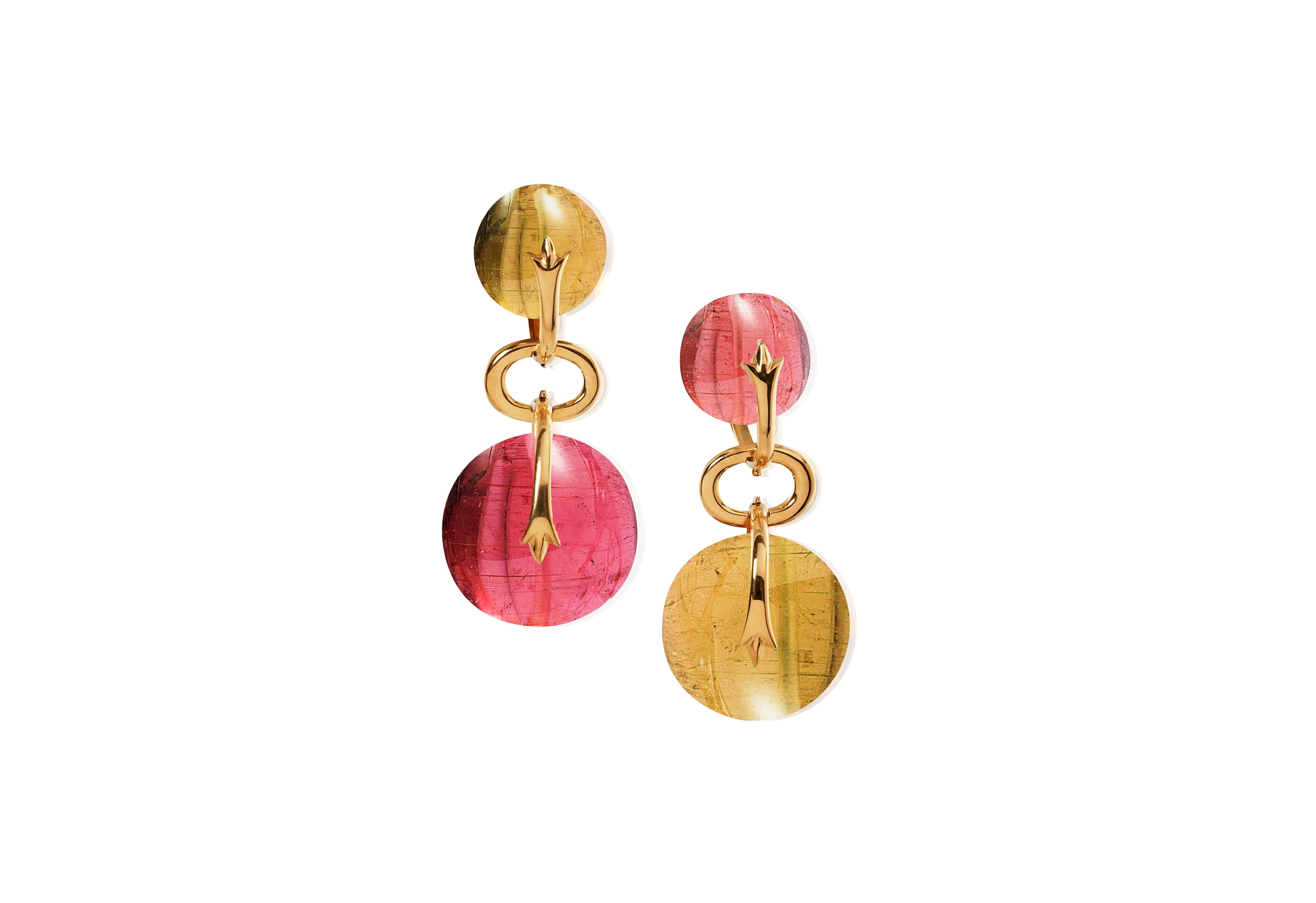 18K Yellow Gold Beyond Pink and Green Tourmaline Drop Earrings