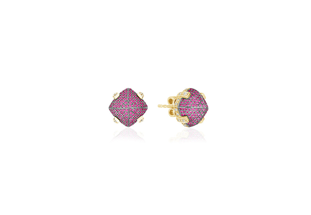 18K Yellow Gold Ruby and Diamond Sugarloaf Earrings