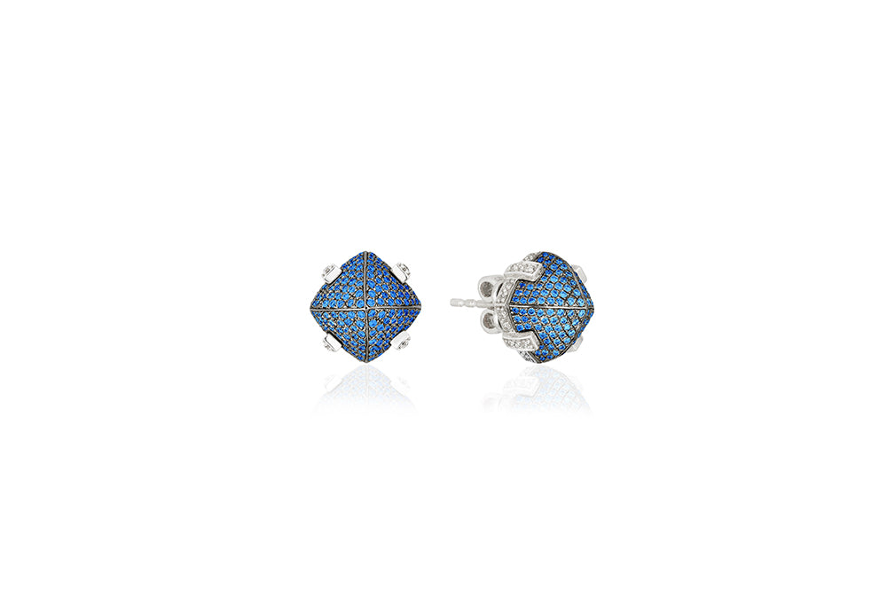 18K White Gold Goshwara Sapphire and Diamond Sugarloaf Earrings