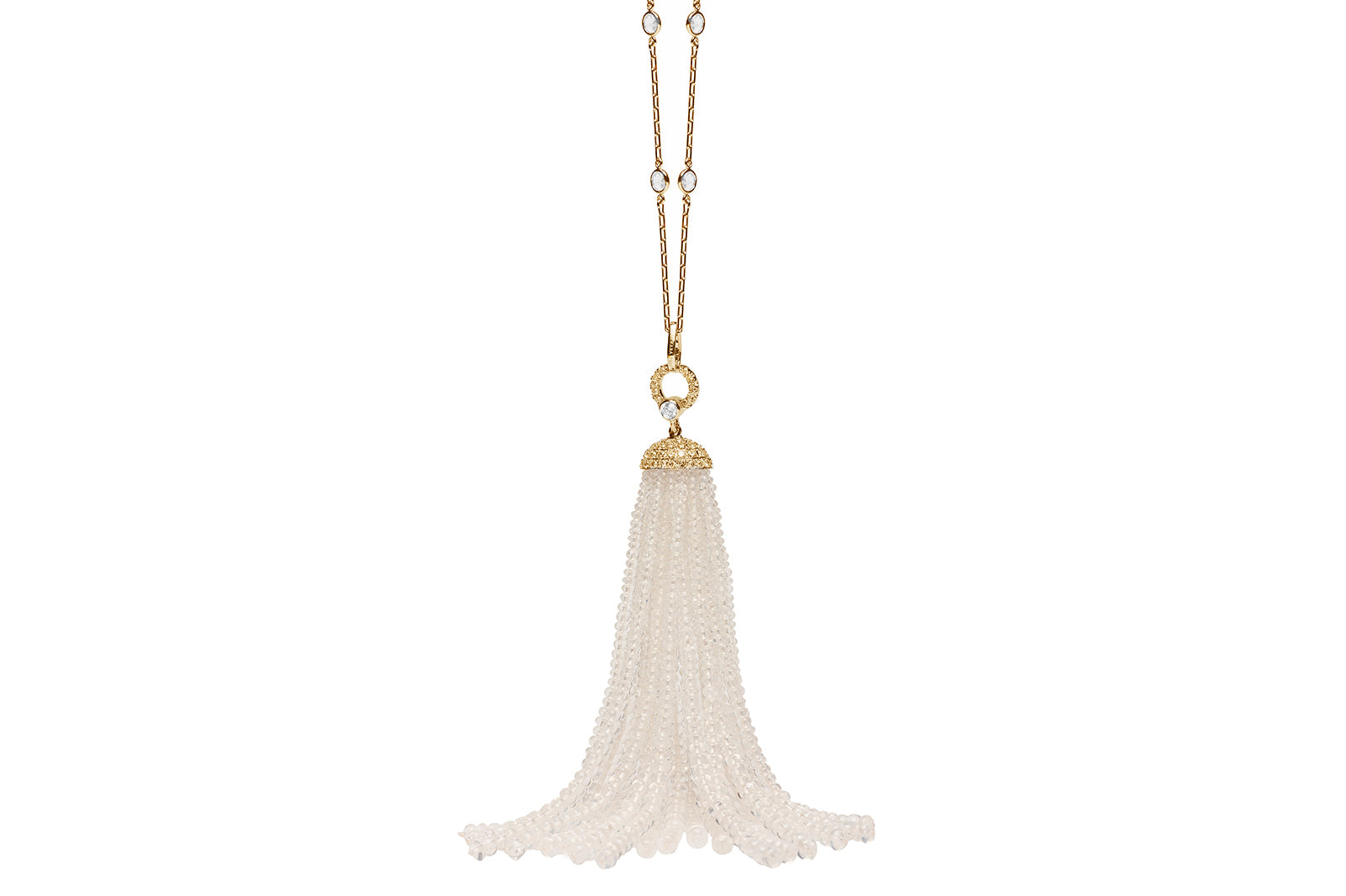 18k Yellow Gold Goshwara Beyond Moon Quartz and Diamond Tassel Necklace