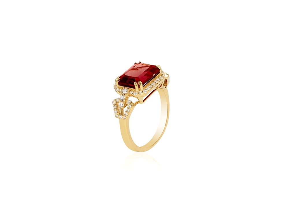 18K Yellow Gold Goshwara Garnet and Diamond Gossip Ring