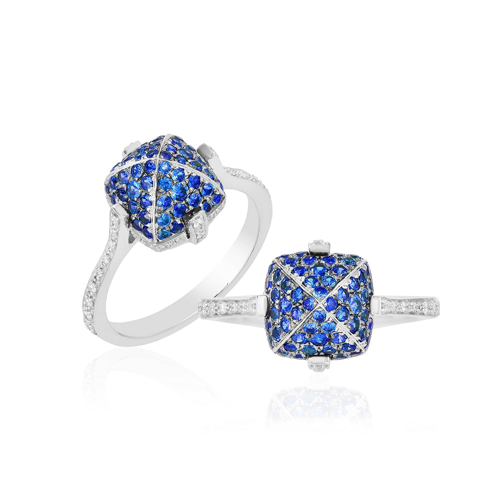 18K White Gold Goshwara Sapphire and Diamond Sugarloaf Ring