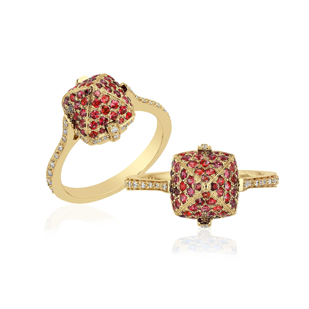 18K Yellow Gold Goshwara Pave Ruby and Diamond Sugarloaf Ring