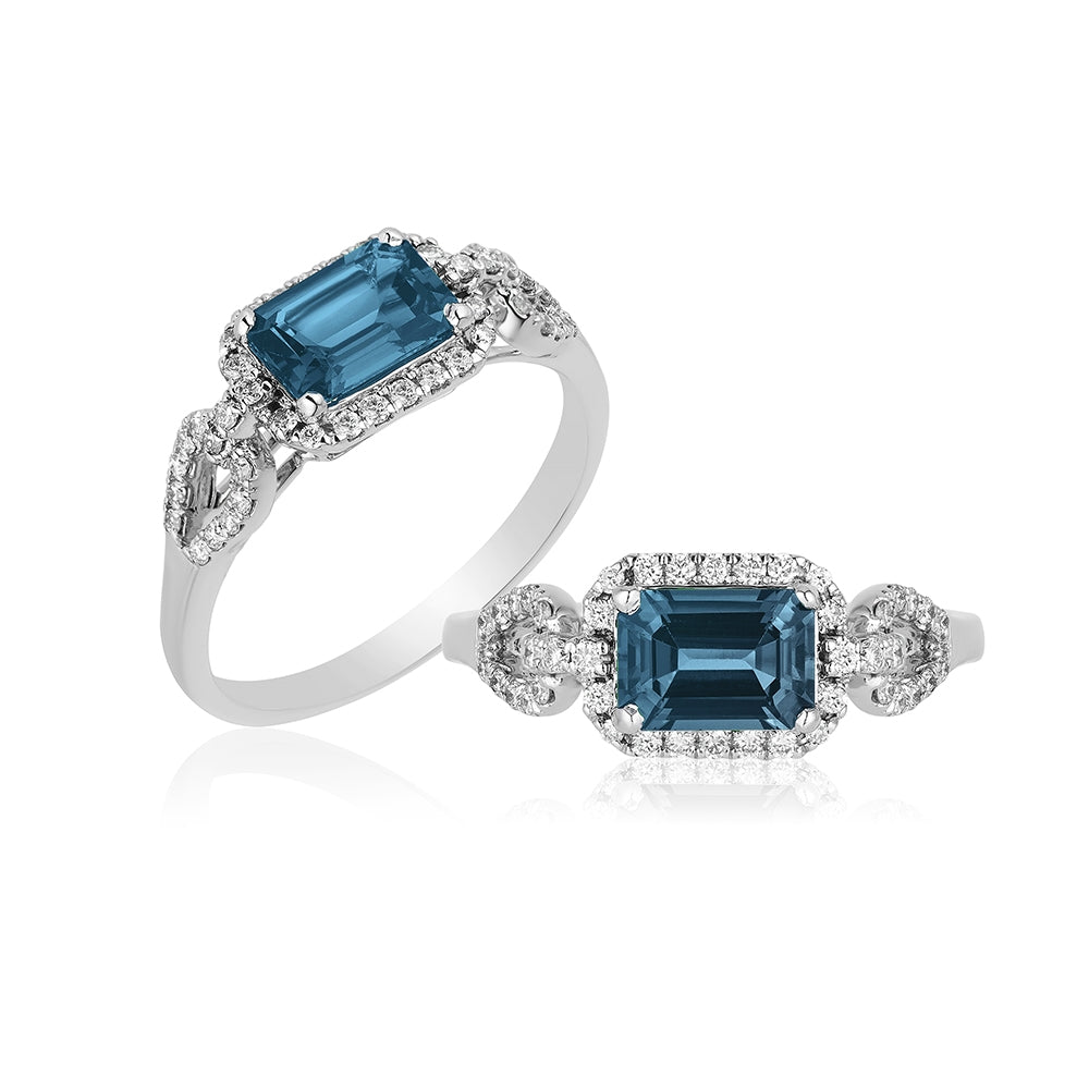 18K Yellow Gold Goshwara London Blue Topaz and Diamond Gossip Ring