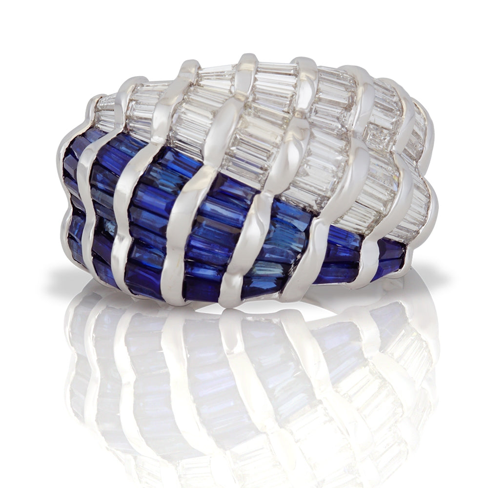 18K White Gold Sapphire and Diamond Baguette Ring