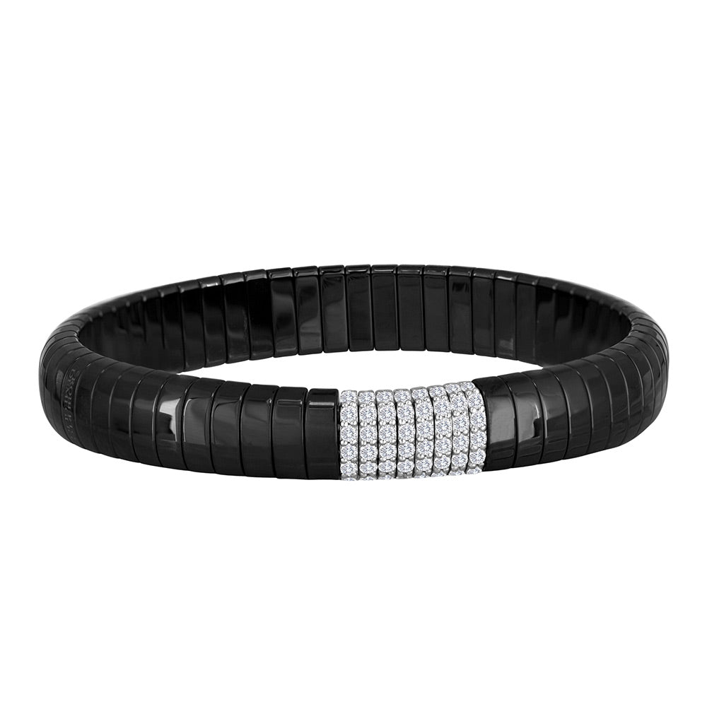 Roberto Demeglio Pura Black Ceramic And 18K White Gold Expandable Bracelet With 8 Diamond Bars, 0.81ctw Of Diamonds. Sz Med